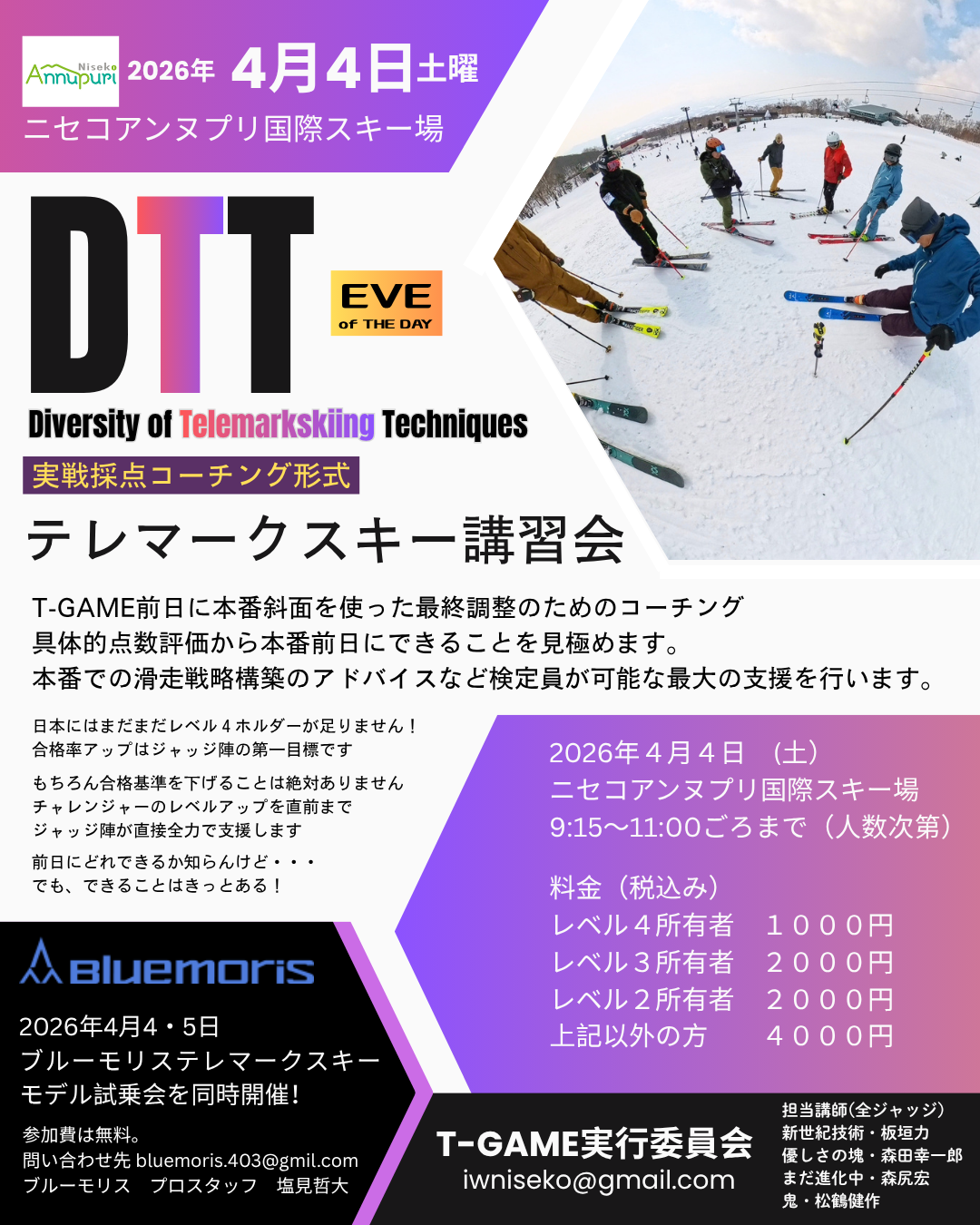日本テレマークスキー技術の最先端は参加者の皆さんとの共同作業になっていきます。よろしくお願いいたします。