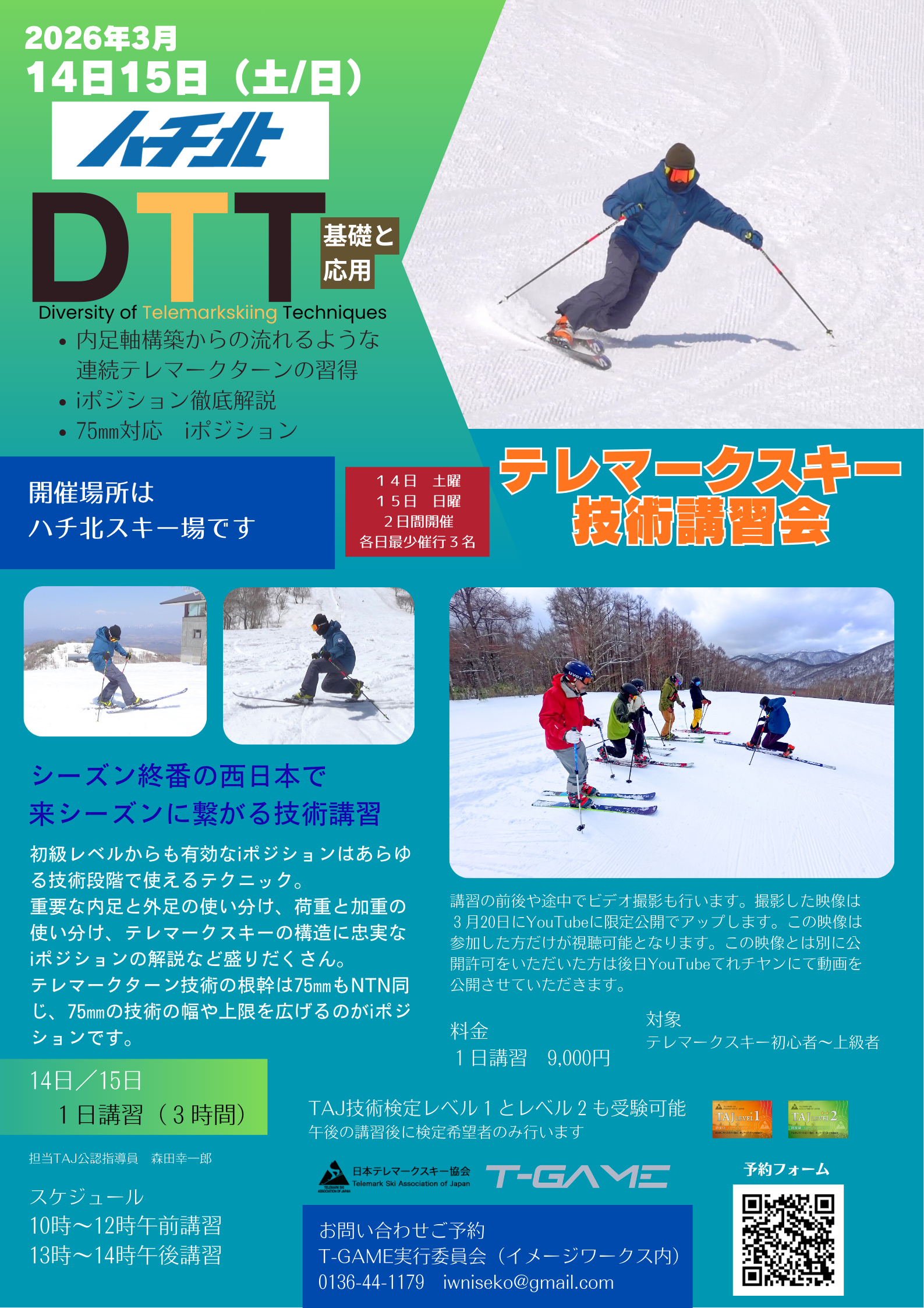 TAJ公認指導員や様々な滑り手との交流や講習会通じて多様なテレマークスキー技術について検証するプロジェクトです。