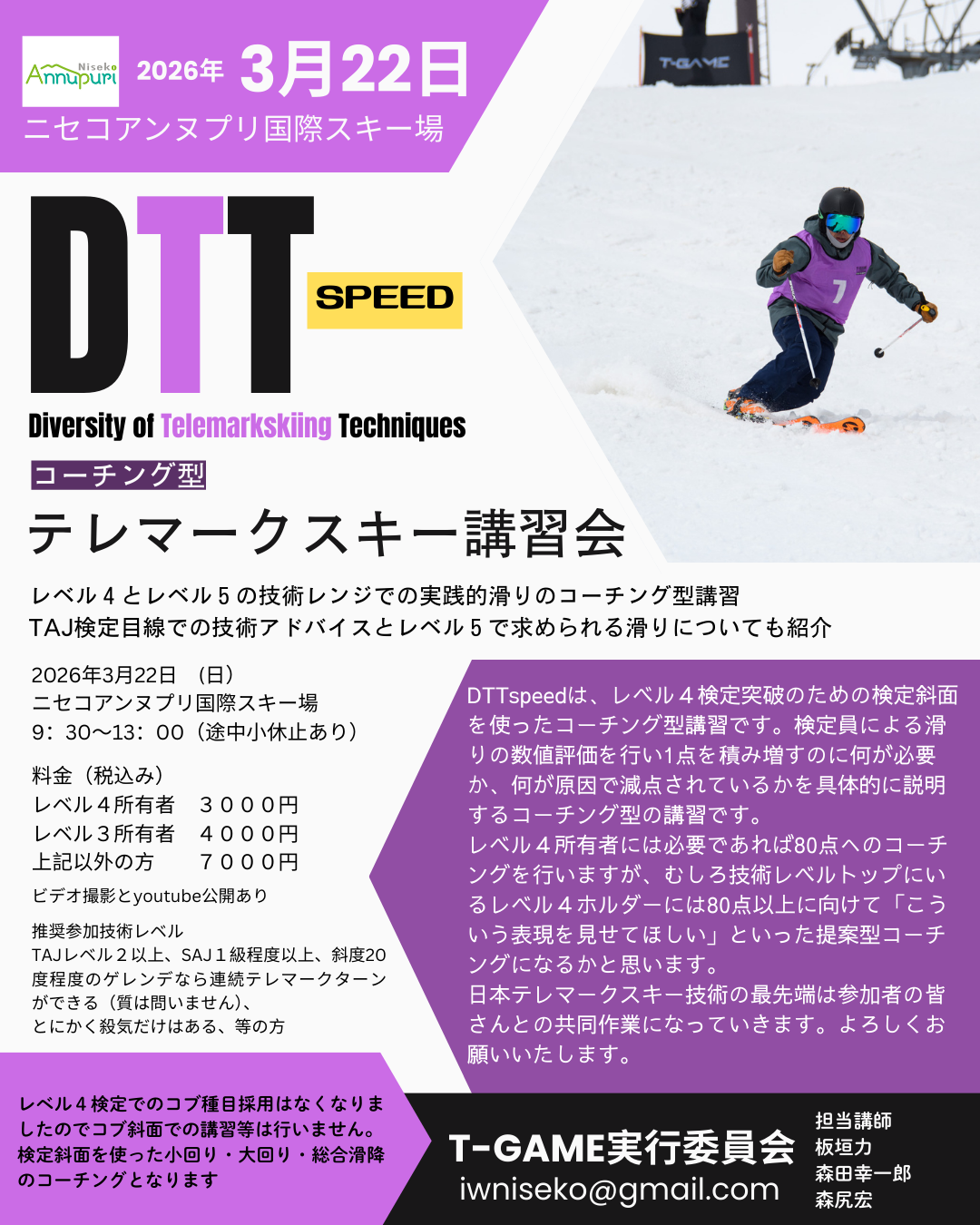 DTTspeedニセコ2026では各個人のスタイルで75点や80点の評価を引き出すには何をすべきかをコーチングするようなイメージです。