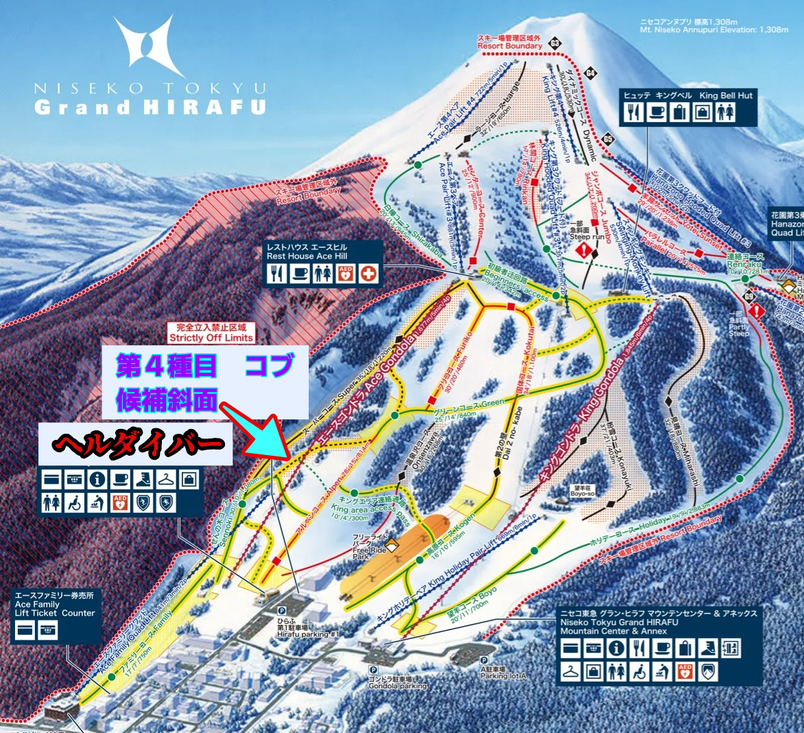 そんなわけで当初予定していたコブ斜面がほぼなくなってしまったので新たなコブ斜面候補地としてマップ上に記した斜面「ヘルダイバー」を加えました。